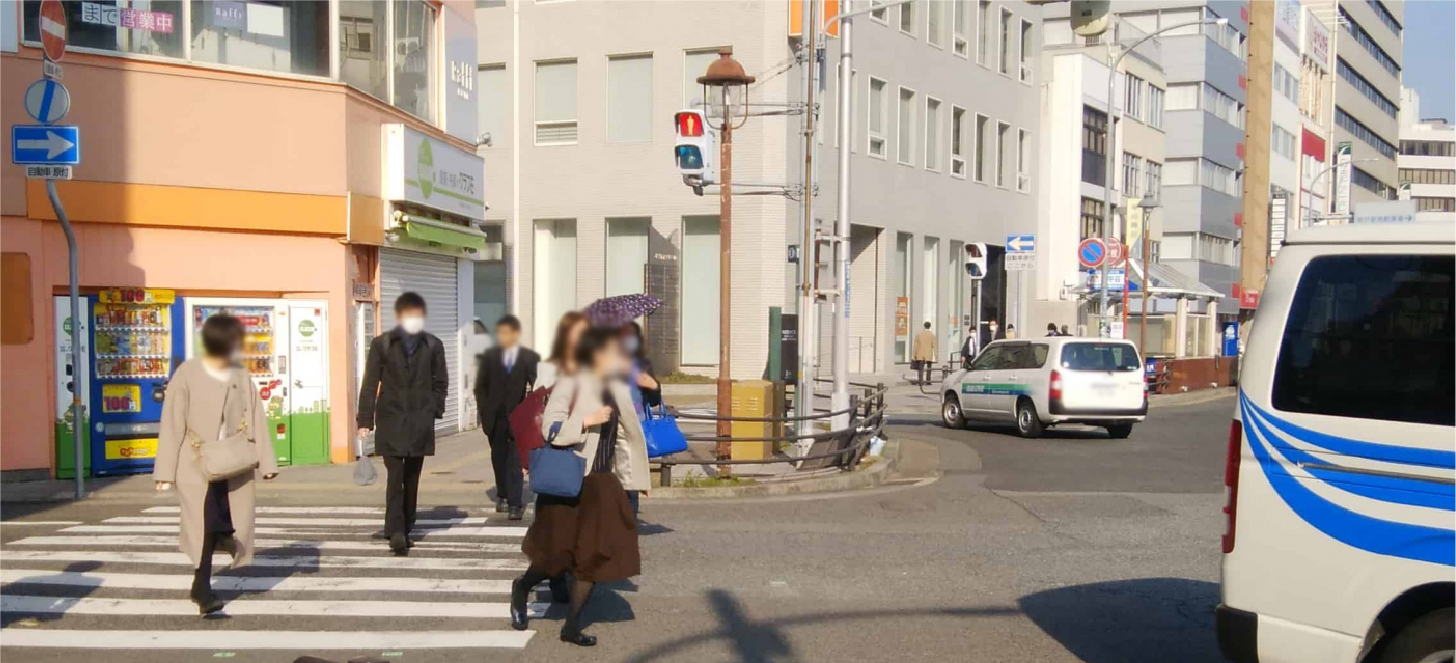 ③ 交差点の横断歩道を渡ります。